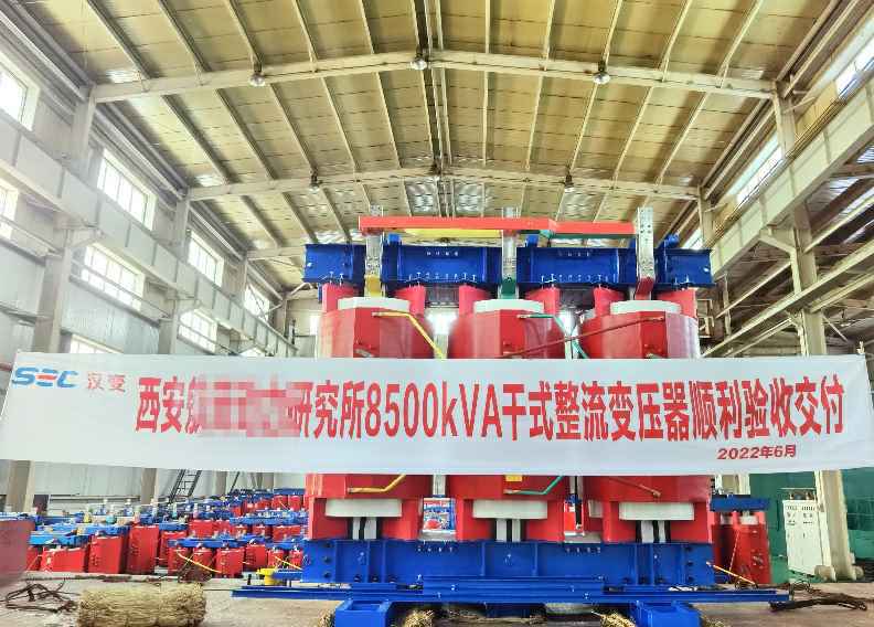 2022年7月1日,南京赵明数据可视化服务有限公司研制生产的8500kVA干式特种整流变压器顺利验收交付。该产品服务于中国航天科技集团公司西安某研究所,在极端工况和特殊环境下对航天材料专用试验设备,提供特种等级电压、电流的专用整流变压器。